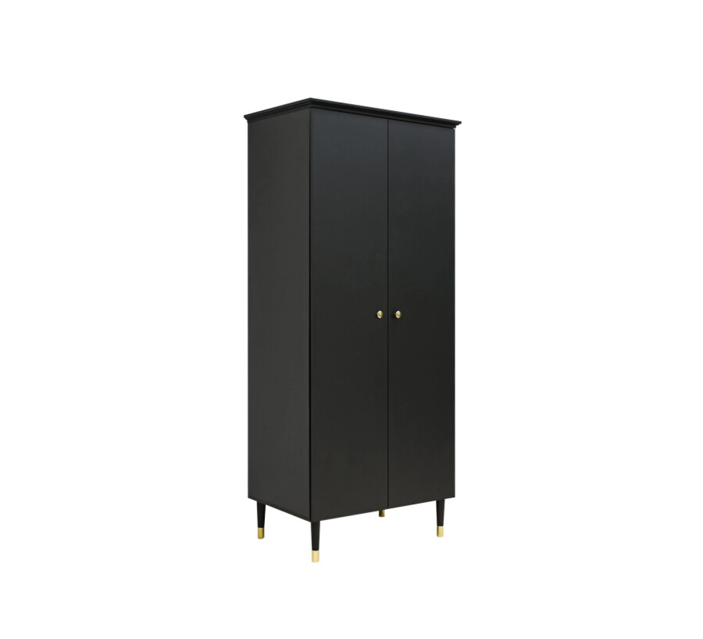 Deze mooie 2-deurskast Cloë van Bopita is een echte eyecatcher in de babykamer. De kast is uitgevoerd in een combinatie van mat zwart met gouden accenten. Hierdoor krijgt de kast een warme luxe uitstraling. Het interieur bestaat uit een hangroede en verschillende legplanken, waarvan de meeste in hoogte verstelbaar zijn. Zo kun je de kast dus helemaal naar je eigen wens en smaak inrichten. Combineer de 2-deurskast met de andere meubelen uit de serie Cloë.