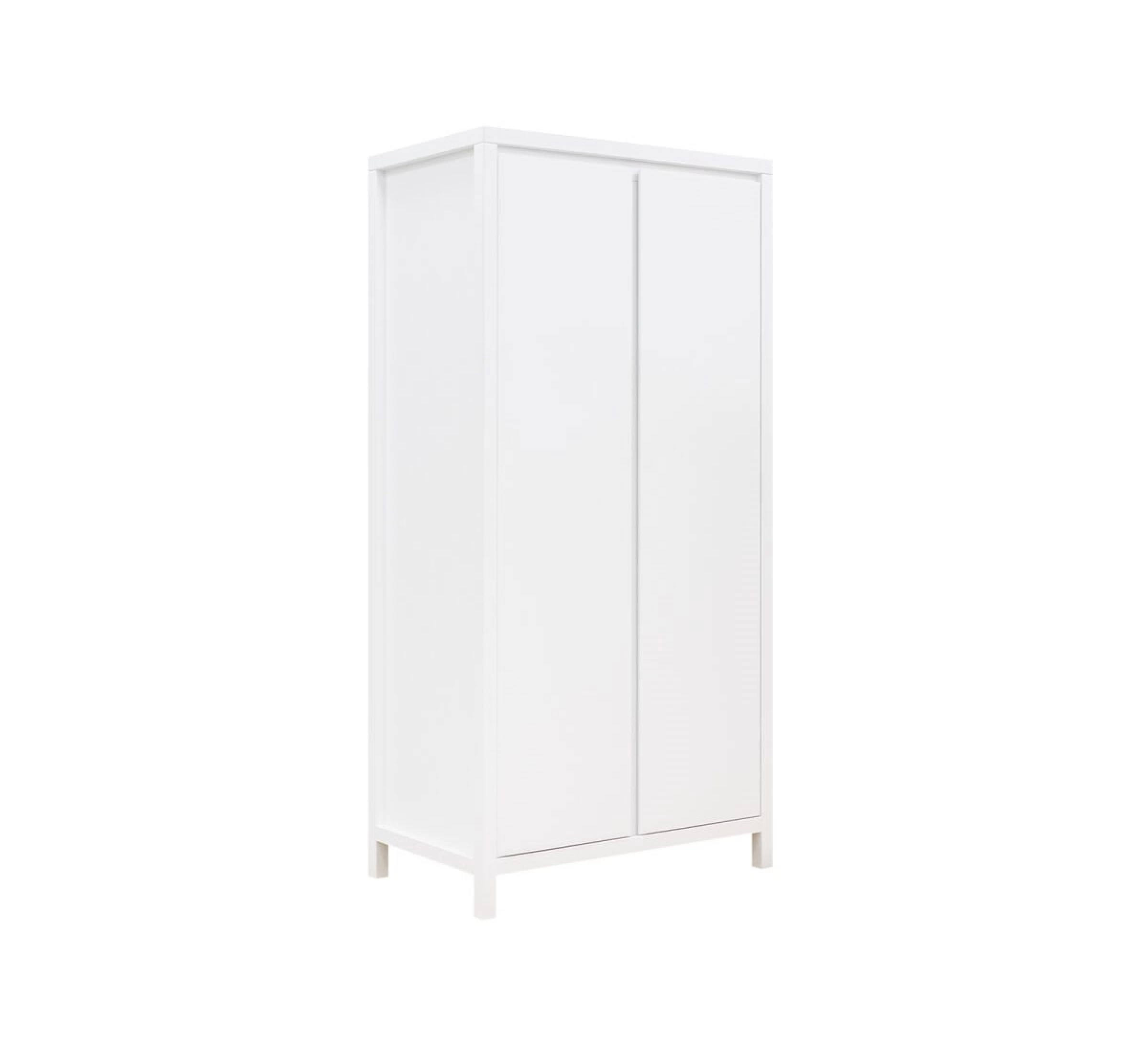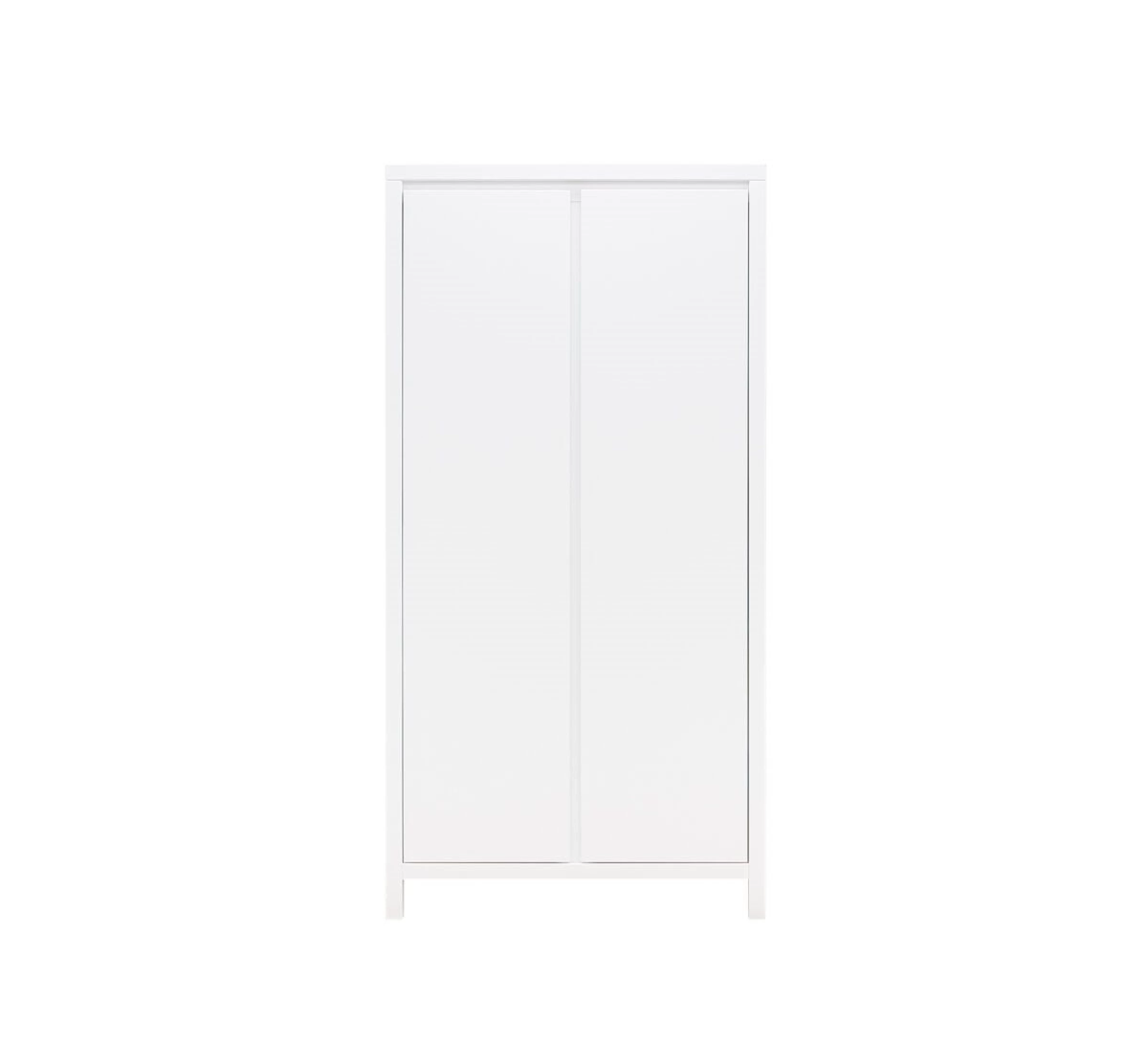 Moderne 2-deurskast Corsica, uitgevoerd in dekkend wit. De lak is op waterbasis en hierdoor kind- en milieuvriendelijk. Deze kast bestaat uit stevig MDF en de soft-close deuren zijn greeploos uitgevoerd. Het interieur van de kast bestaat uit een hangroede, een vaste legplank en twee verstelbare legplanken. Genoeg mogelijkheden dus om spullen netjes opgeruimd te hebben!