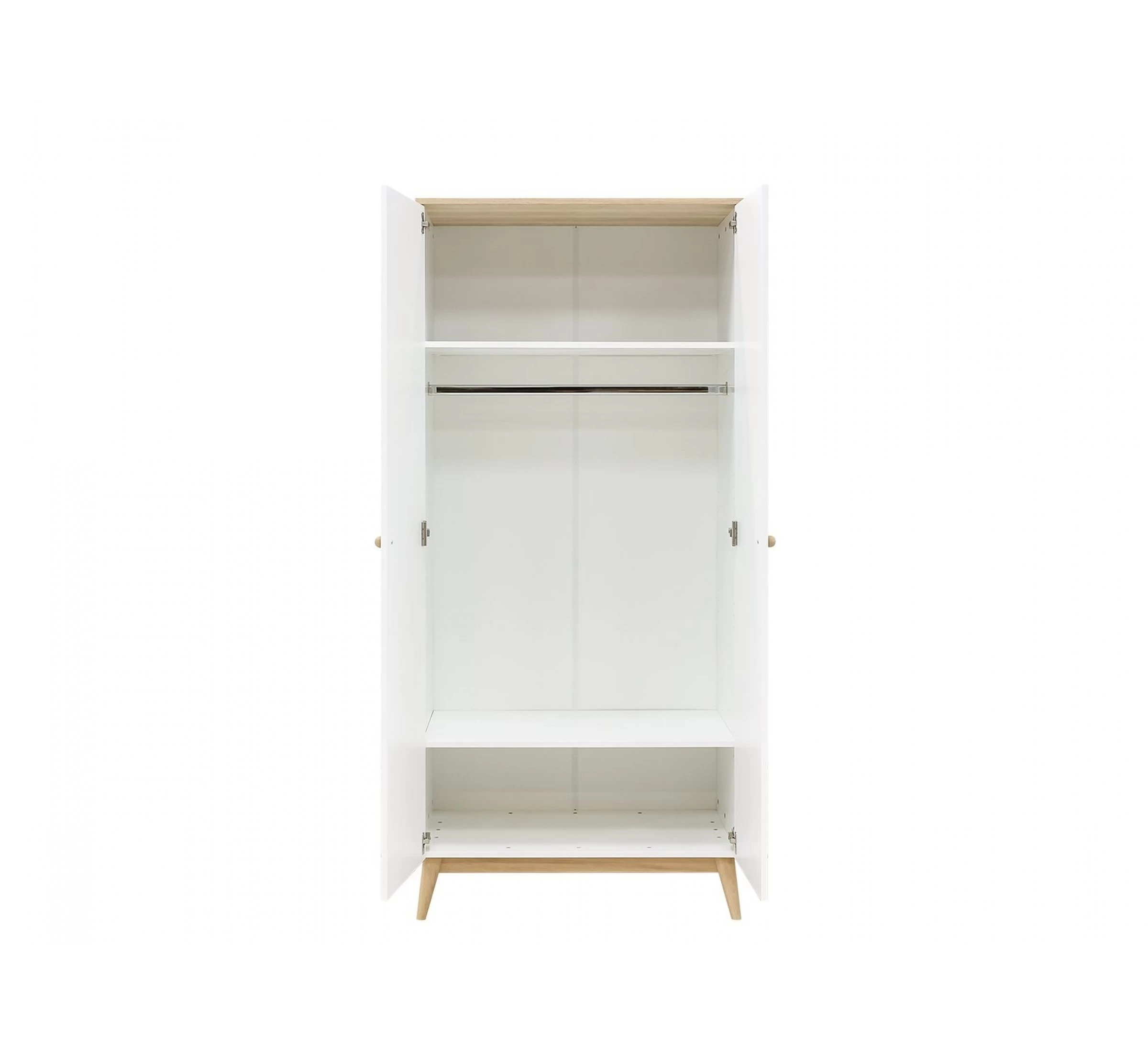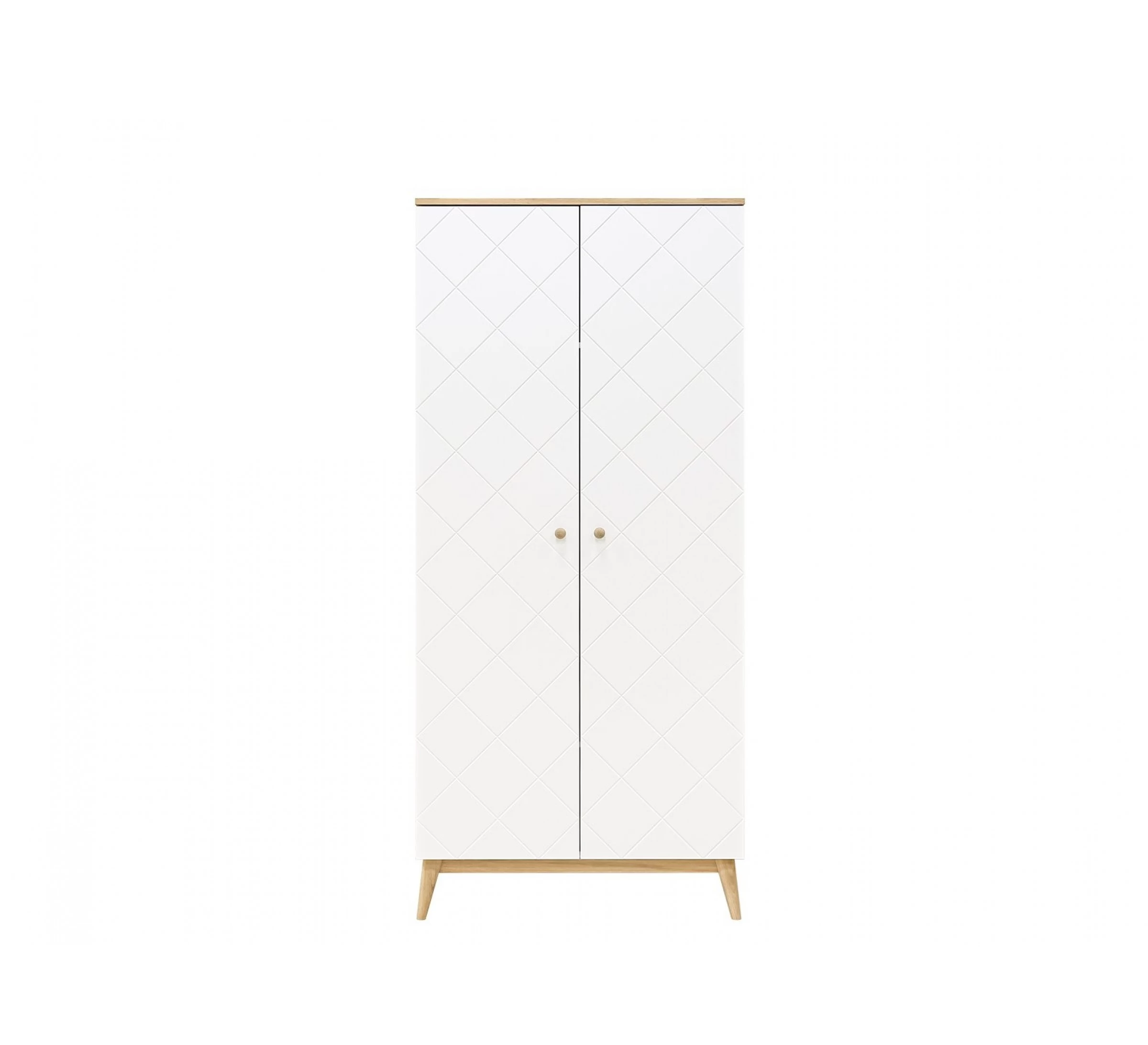 De 2-deurskast Paris van Bopita is voorzien van karakteristieke diagonale groeven en een eikenhouten afwerking, waardoor de kast een luxe uitstraling heeft. Het interieur bestaat uit één brede hangroede en twee legplanken. Hierdoor heb je dus voldoende ruimte om al je spulletjes en kleding te kunnen opbergen.