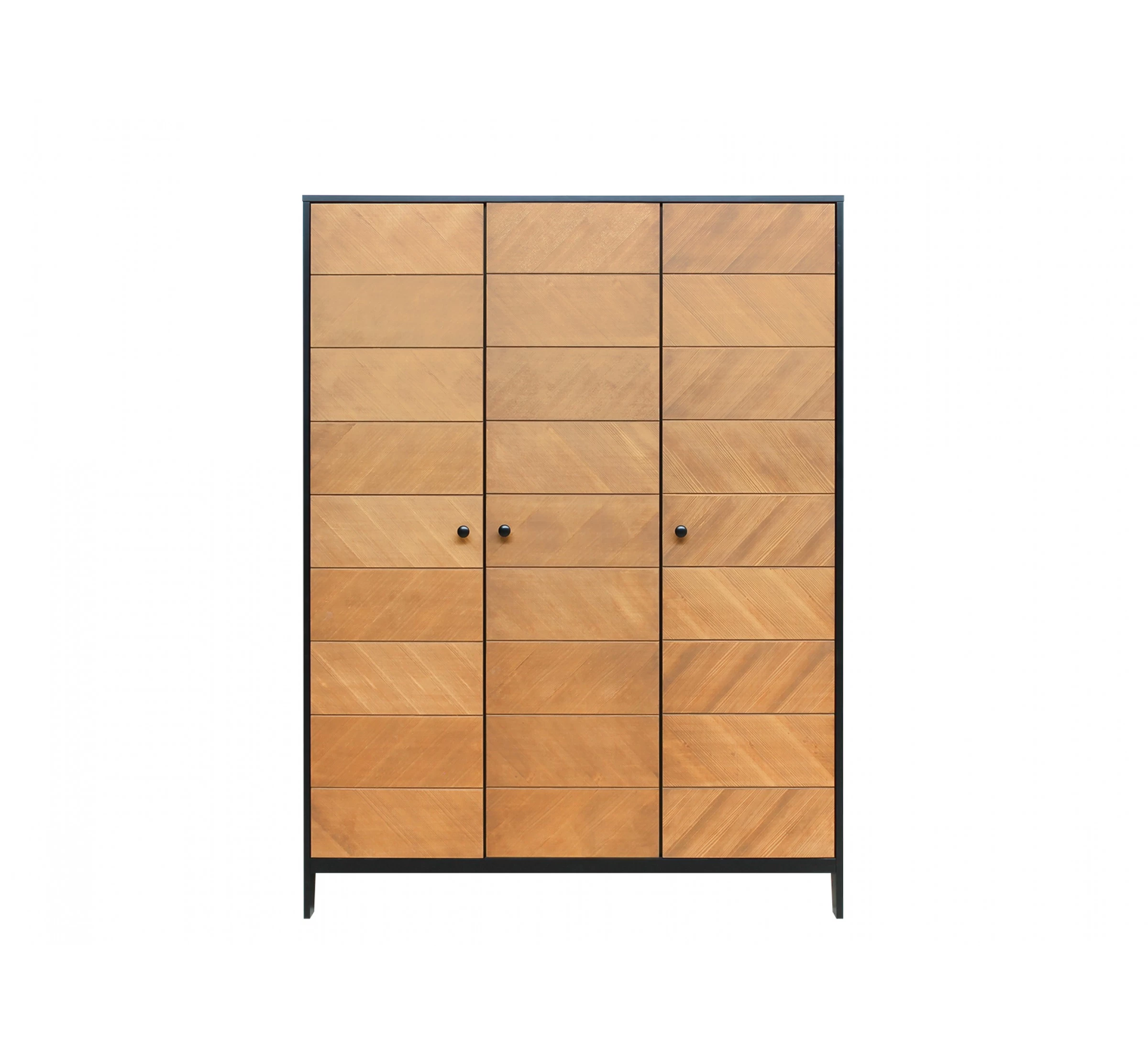 Kom je opbergruimte tekort? Kies dan voor deze ruime 3-deurskast Job van Bopita. De kast is uitgevoerd in een stoere combinatie van mat zwart met gefineerd hout en heeft daardoor een rustieke en stijlvolle uitstraling. Achter iedere deur bevinden zich drie legplanken en een hangroede.
