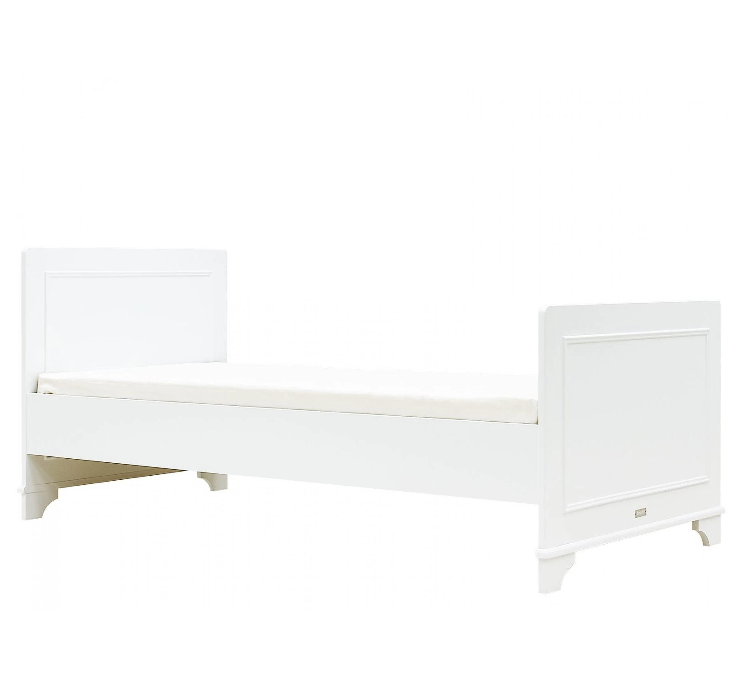 Dit tienerbed uit de serie Charlotte van Bopita heeft een stijlvolle en klassieke uitstraling door de sierlijke poten en sierlijsten op het hoofd- en voeteneind. Het bed is exclusief lattenbodem en exclusief matras. Combineer dit bed met de andere meubels uit de serie Charlotte.