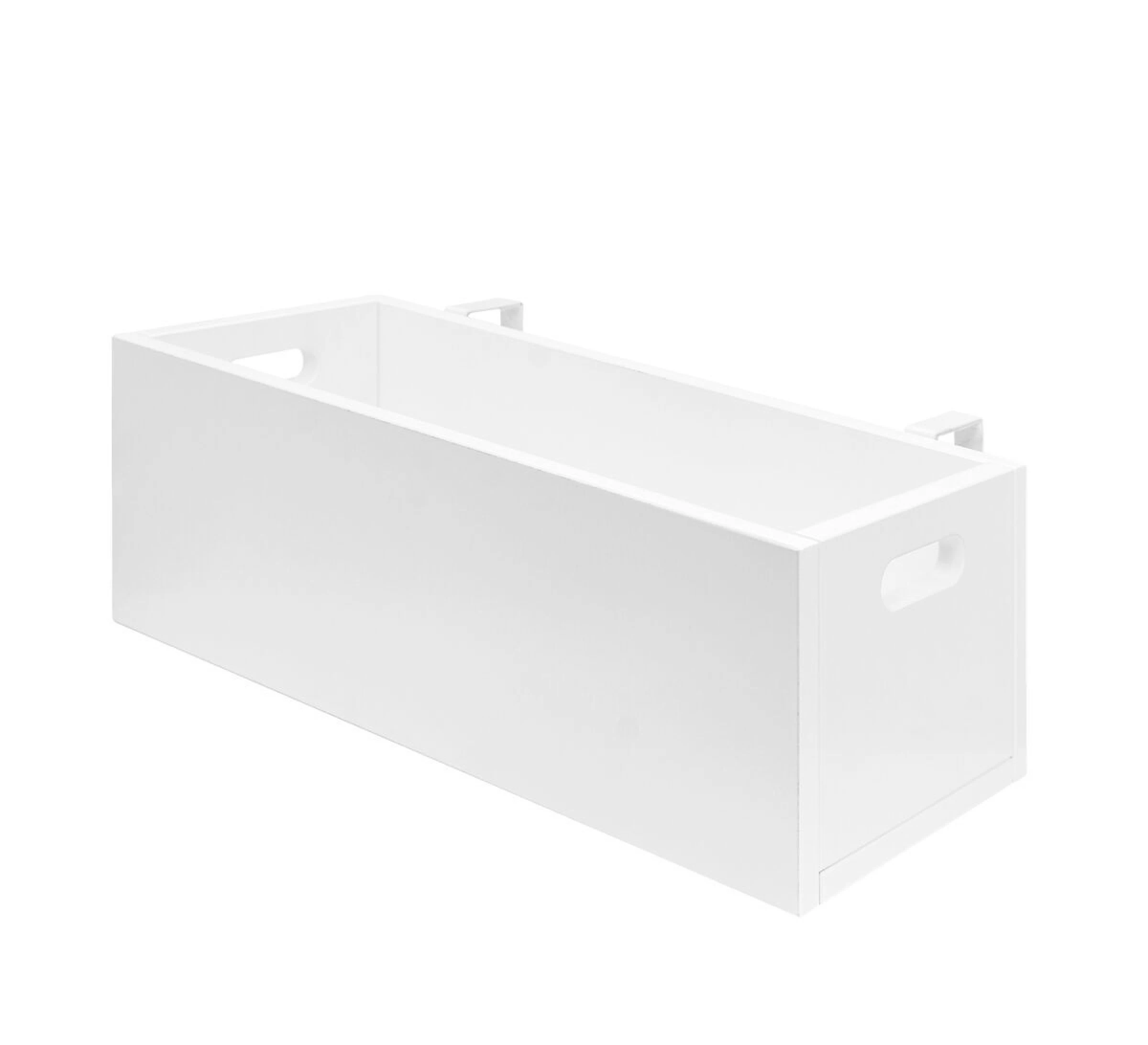 Bakje met metalen haken (voorzien van vilt) om over een bedrand te schuiven. Hierdoor kun je boeken, een wekker, en andere spullen naast je bed bewaren. Ideaal als ‘nachtkastje’ bij een hoogslaper. Kan zowel aan de zijkant als aan het hoofd- of voeteneind gehangen worden.