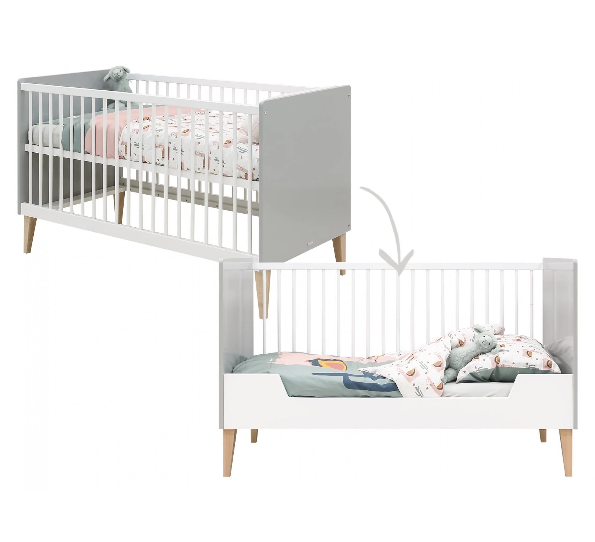 Let op: dit bed is niet om te bouwen naar een cotbed. Er is altijd één spijlenzijde aanwezig.