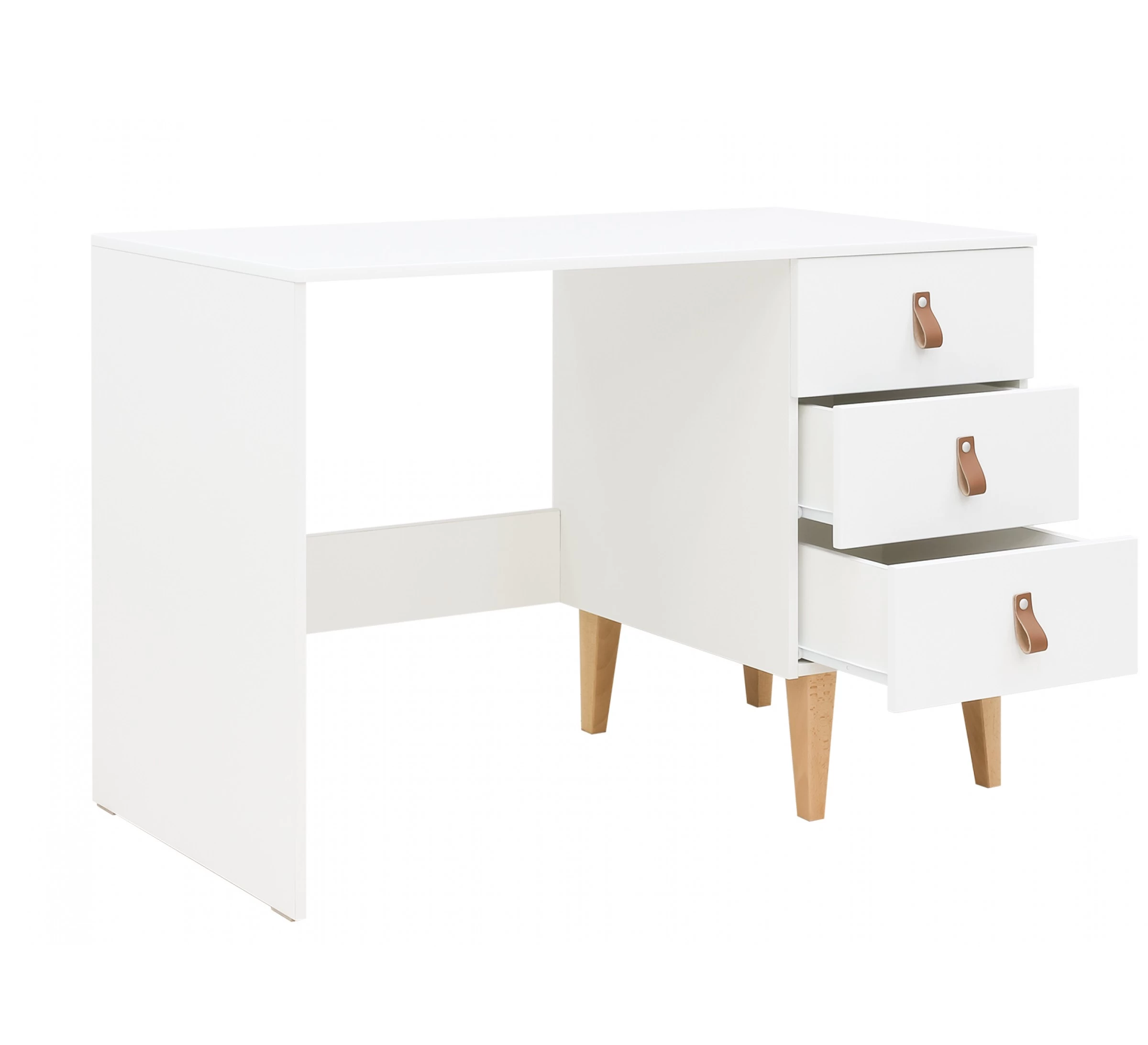 Het bureau Indy ziet er niet alleen mooi uit, maar is ook nog eens heerlijk om aan te werken of te studeren. Het bureau is voorzien van drie lades die ieder een kenmerkende leren handgreep hebben. De ranke beukenhouten pootjes is ook iets waaraan de Indy serie te herkennen is. De lades bieden veel opbergruimte voor al je spulletjes.