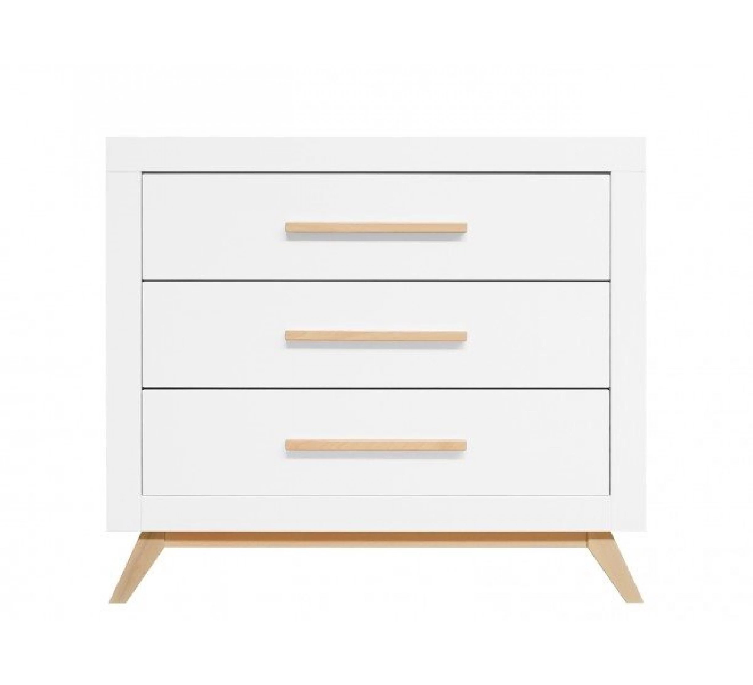 Deze Bopita commode uit de serie Fenna is voorzien van drie ruime lades waar je heel veel spullen in op kunt bergen. Door de combinatie van de witte panelen en de blank gelakte houten accenten heeft deze commode een moderne en eigentijdse uitstraling. Combineer deze commode met de apart verkrijgbare barrier Square, zodat je je baby eenvoudig kunt verschonen.