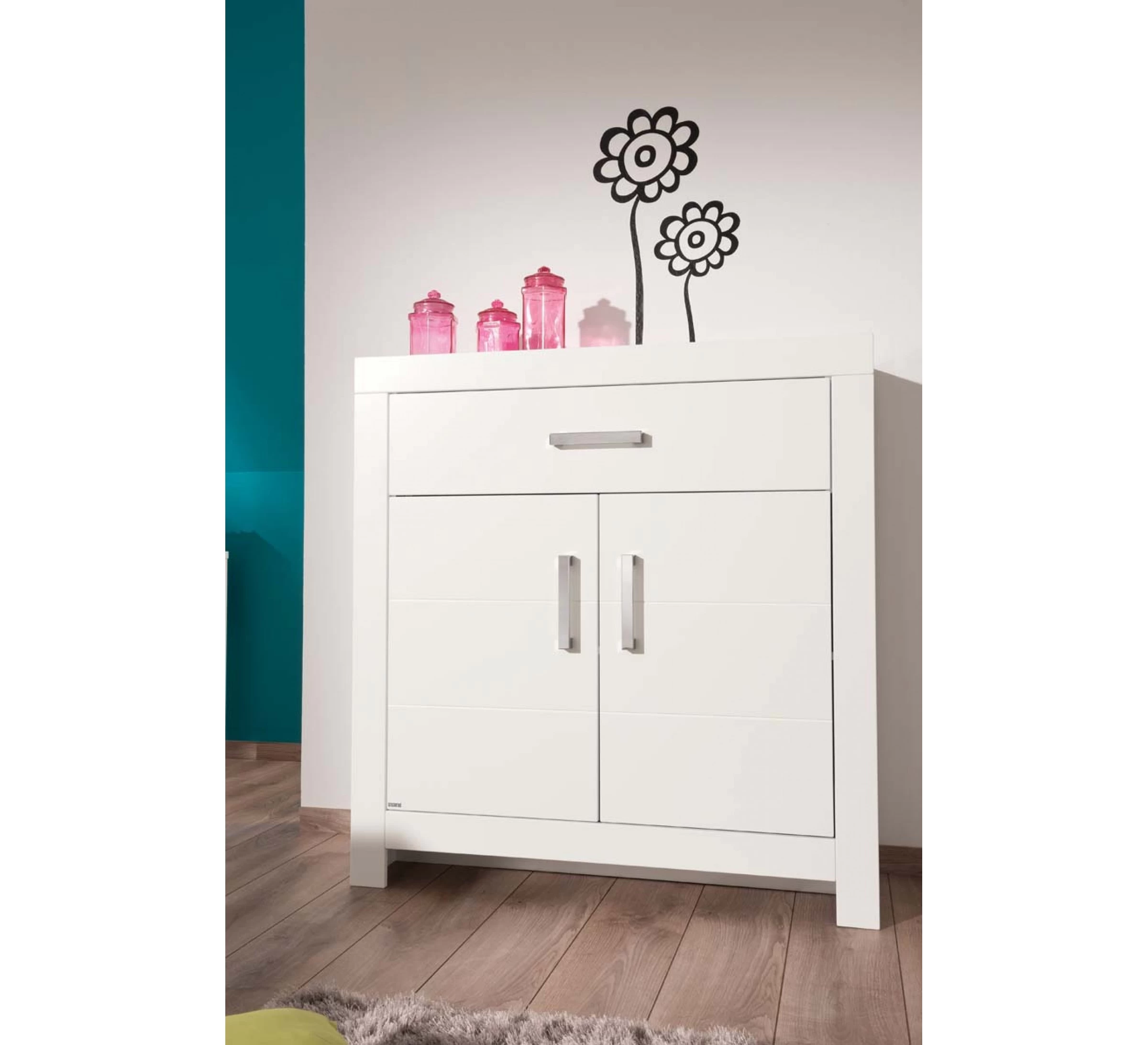 Deze halfhoge kast is voorzien van een lade en 2 deurtjes. Achter de deurtjes zit een legplank. De handvaten van de Fiona highboard zijn uitgevoerd in mat chroom. Afmetingen: Breedte: 110 cm Hoogte: 115 cm Diepte: 39 cm