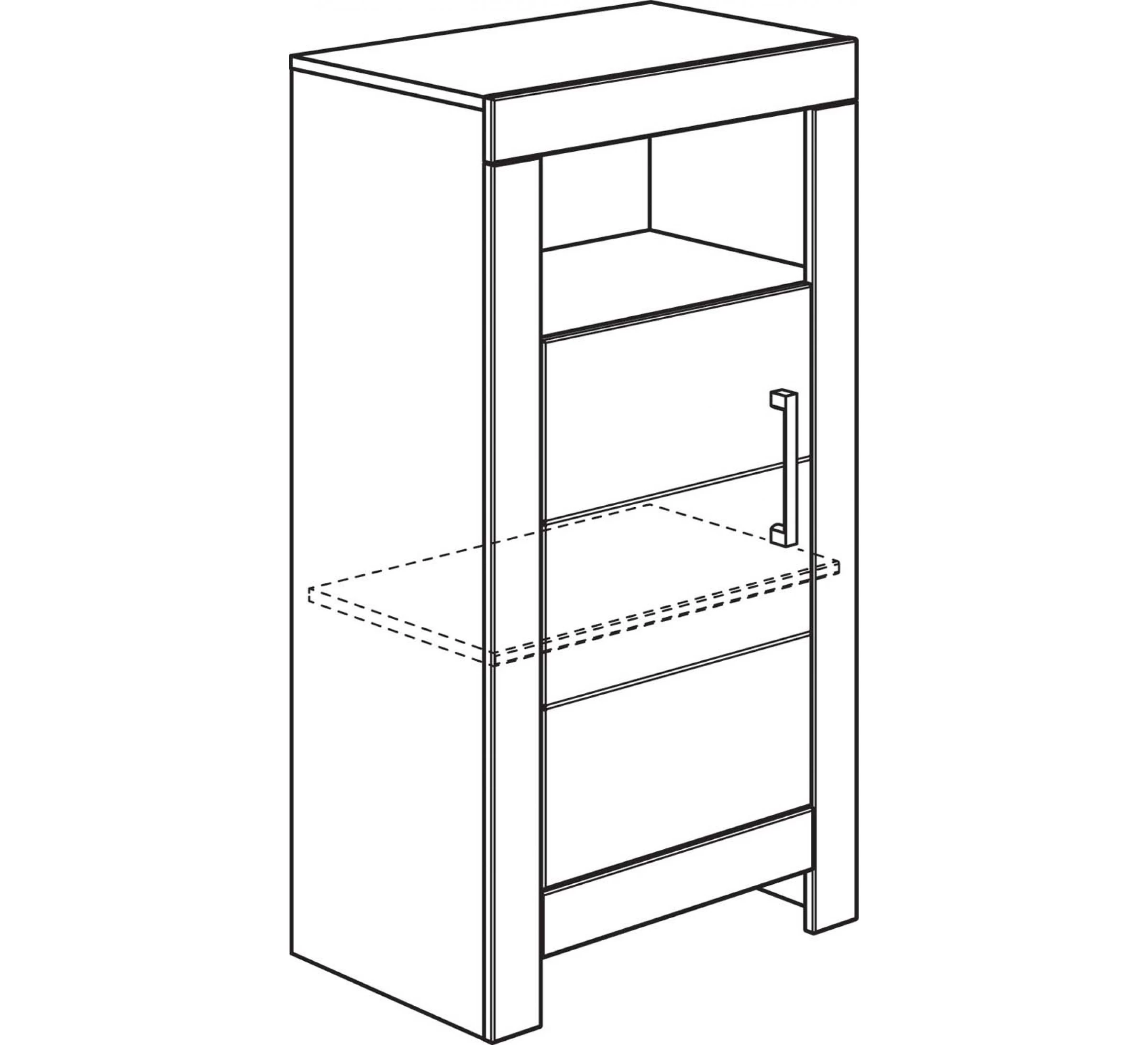 Fiona legkast voorzien van 1 legbord, 1 open vak en een deurtje. De legkast is voorzien van mat chromen handgrepen. Afmetingen: Breedte: 63 cm Hoogte: 115 cm Diepte: 39 cm