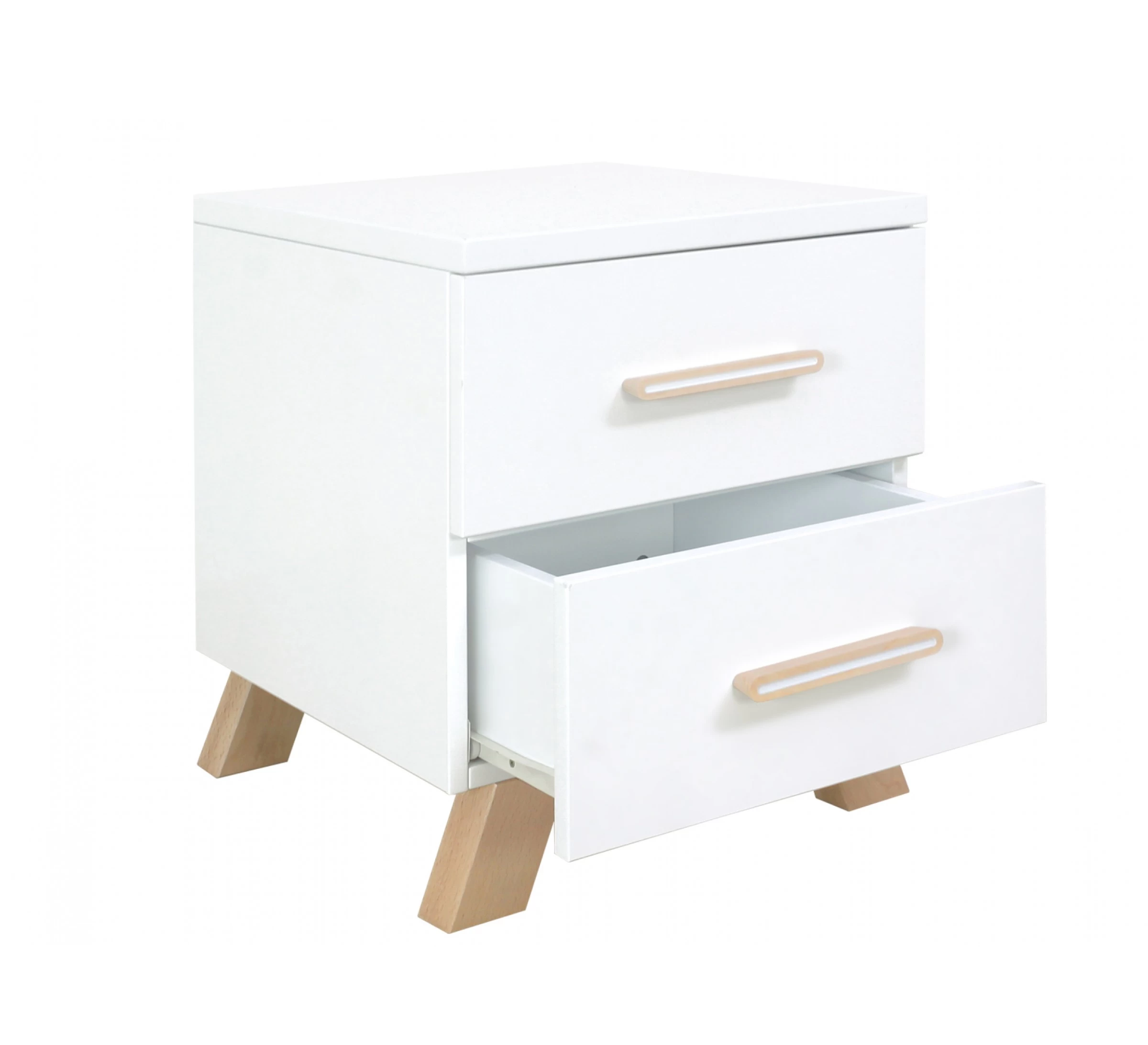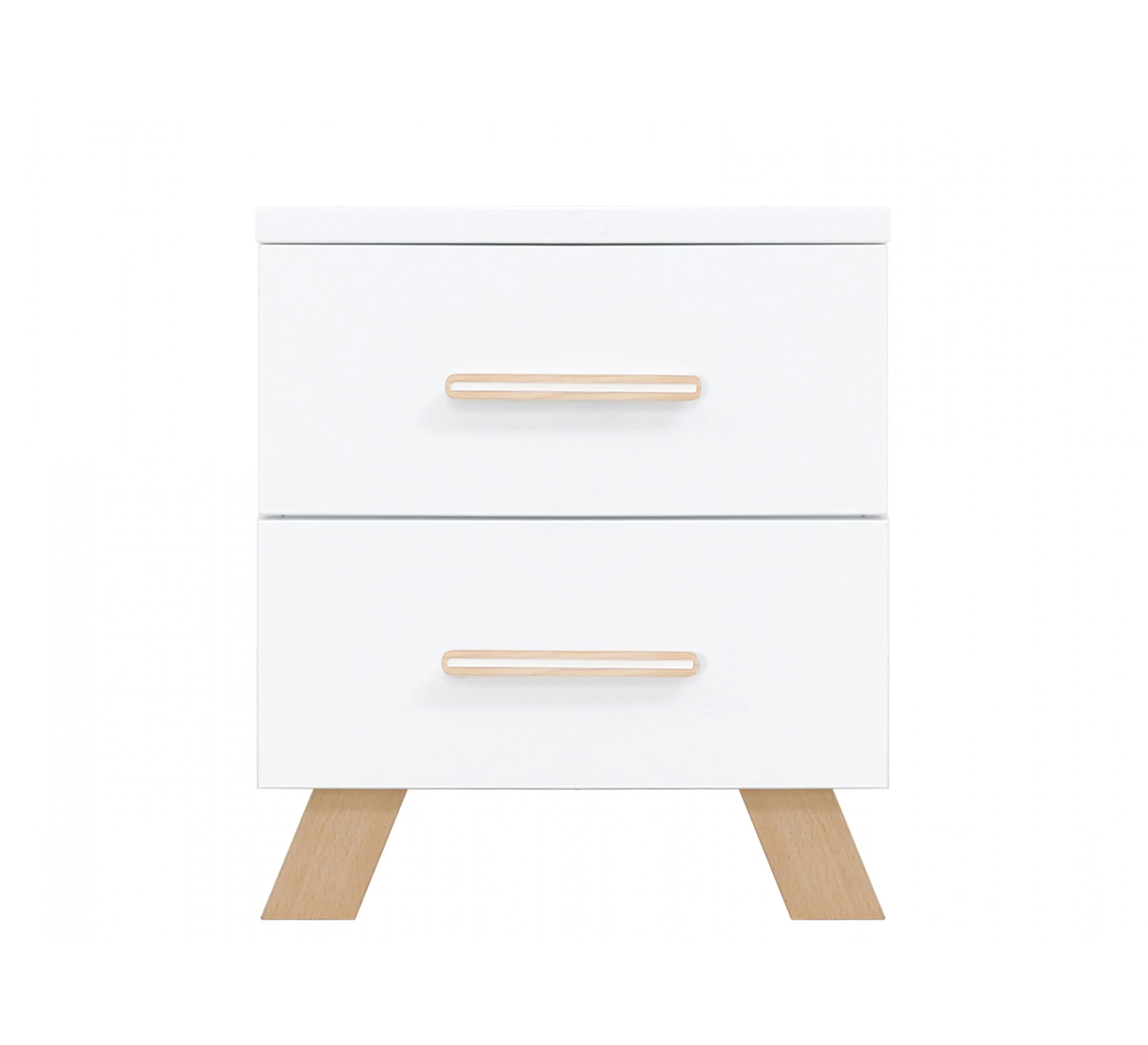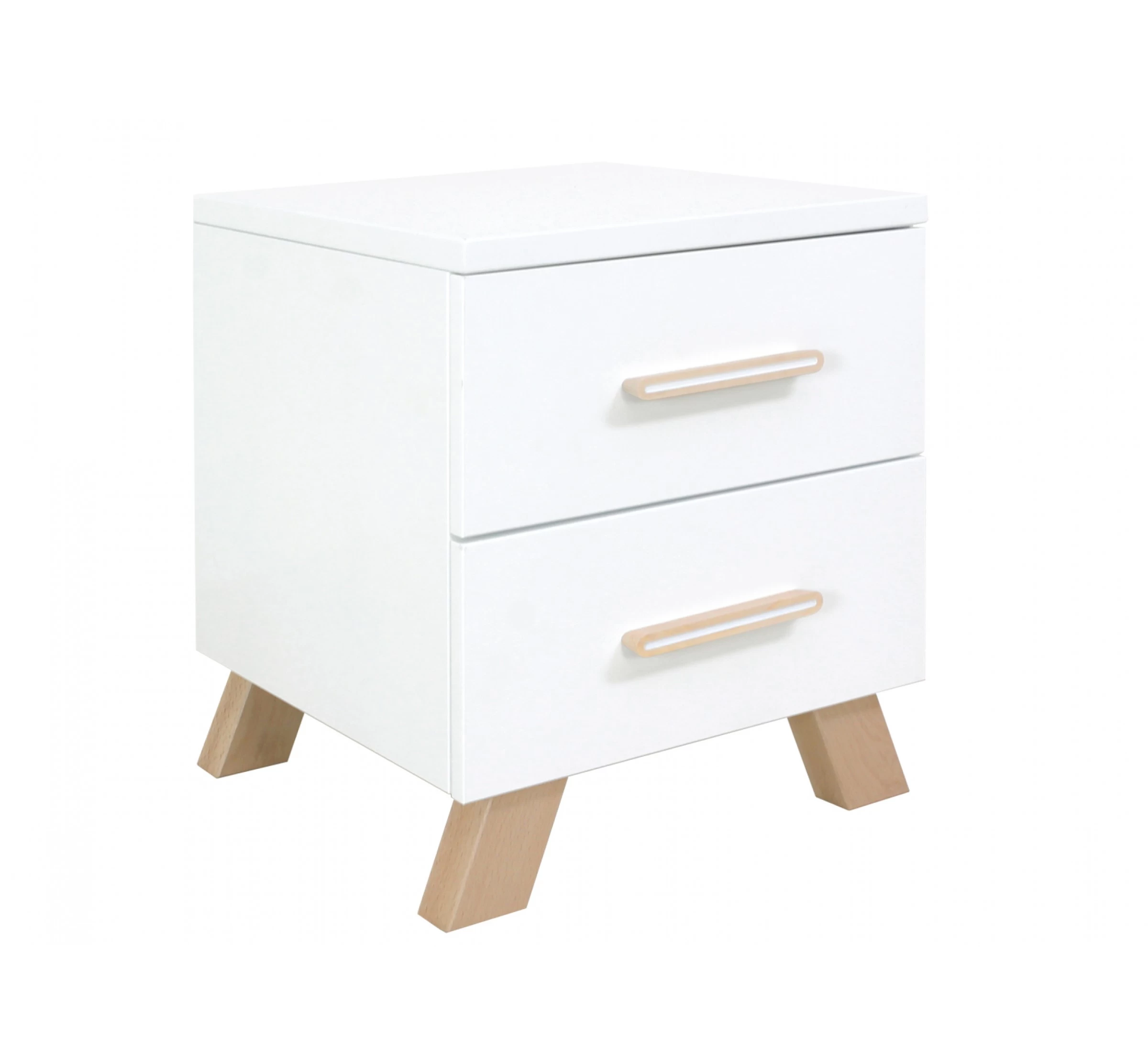 Het nachtkastje Lisa van Bopita heeft een eigentijdse uitstraling door de combinatie van dekkend wit en blank gelakte beukenhouten poten. Het kastje is voorzien van twee ruime lades voor het opbergen van spullen. Dit nachtkastje is ideaal te combineren met het Lisa bed 90x200cm.