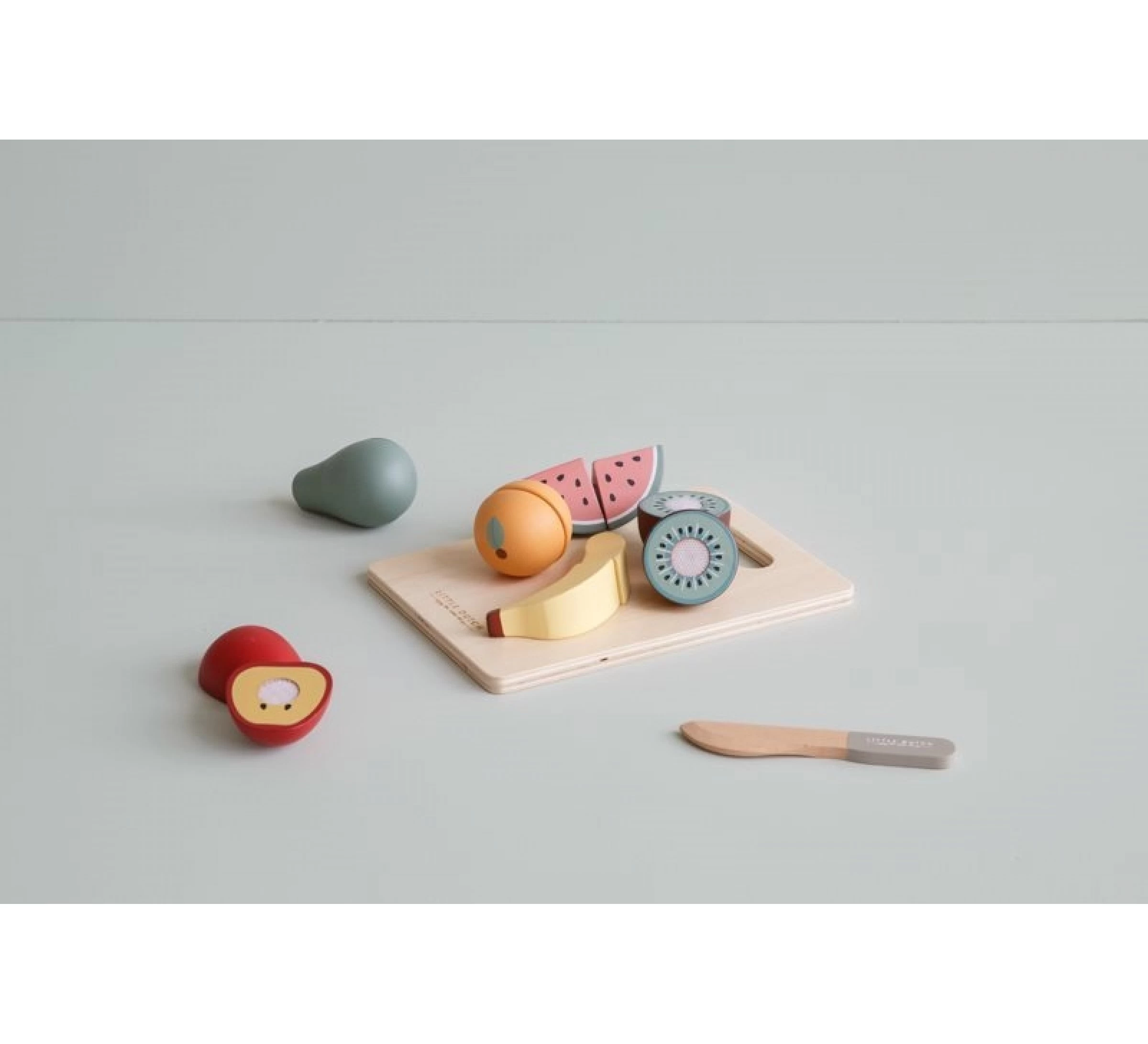 Vindt jouw kleintje het geweldig om te te kijken achter in de keuken? Met deze set van Little Dutch kan jouw kleintje lekker oefenen met het snijden van fruit. De snijset bestaat uit een houtenplank en 6 verschillende stukken fruit en een houtenmes. Ieder stuk fruit heeft klittenband zodat jouw kleintje het fruit gemakkelijk los en vast kunt maken.