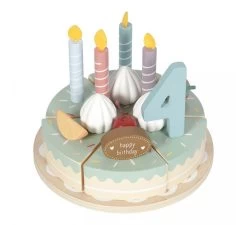 “Hiep Hiep Hoera !” Dit is de houten verjaardagstaart van het merk Little Dutch en bestaat uit 26 delen. De taart bestaat uit 6 losse taartpunten op een plateau, kaarsen, slagroomtoefjes en cijfertoppers.