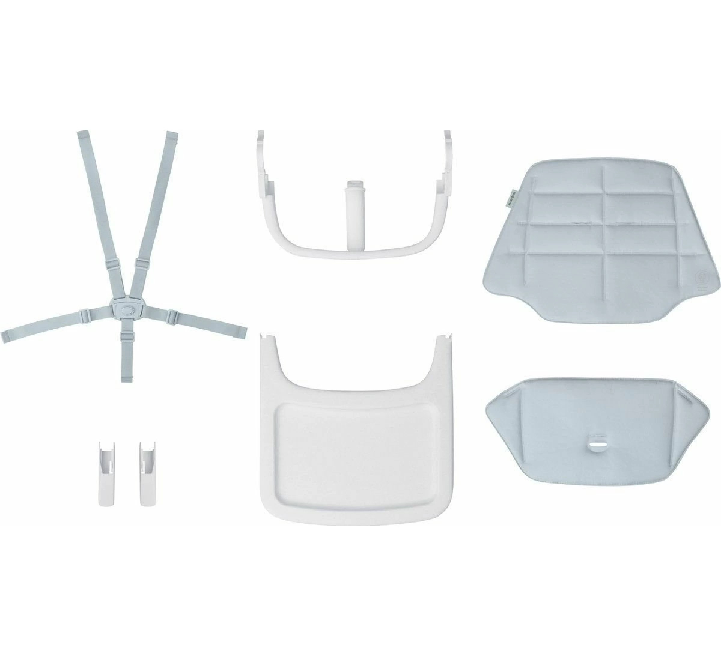 – Bestaat uit: stoelverkleiner, eetblad, 5-puntsveiligheidsgordel, T-bar en voetverlengstuk