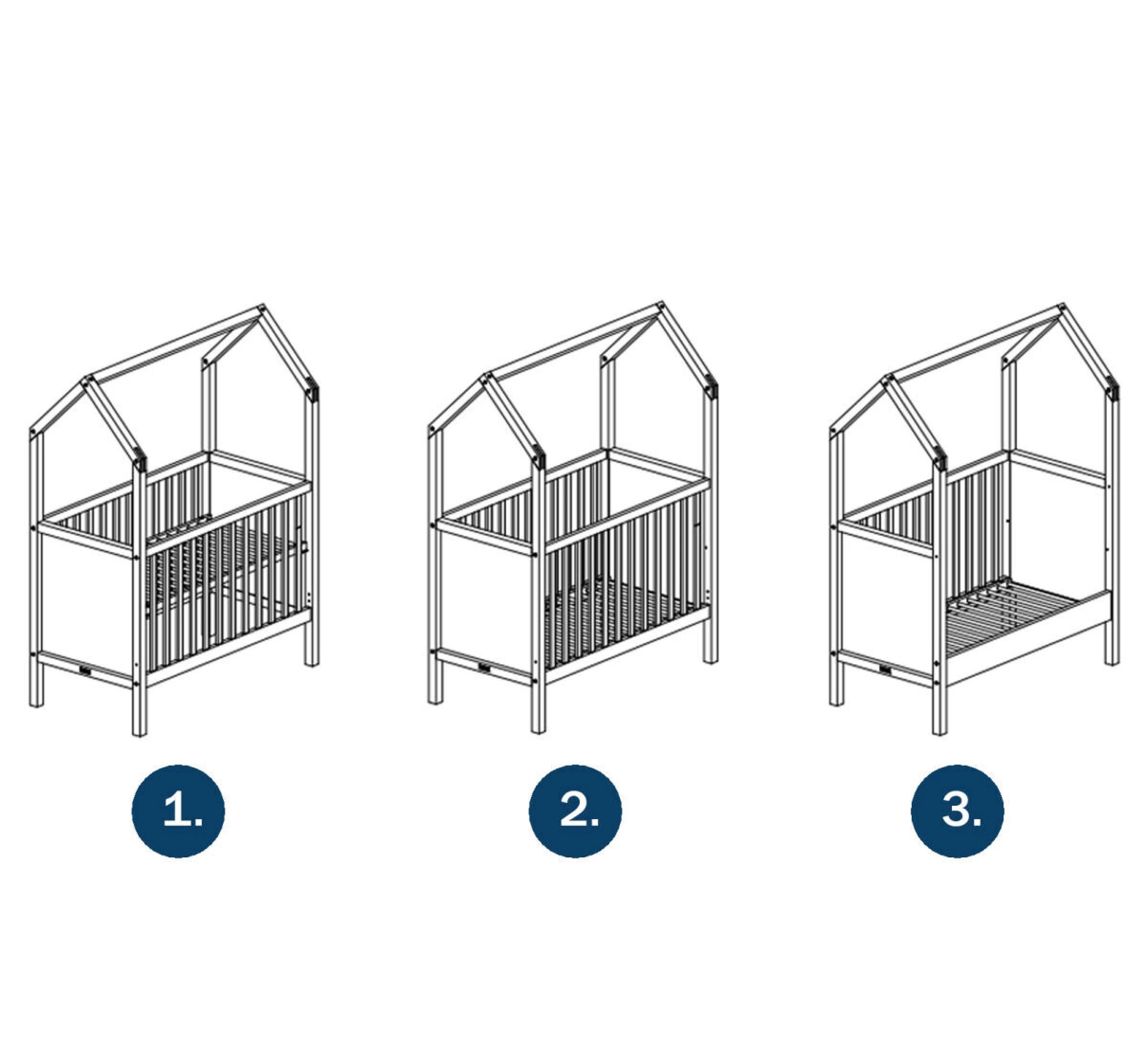 My First House Bedbank 70×140 is een ombouwbaar bed met een dakframe. De bedbodem is in hoogte verstelbaar. Van een spijlenbed naar een bedbank ombouwbaar. Zo heb je extra lang plezier van dit bed! De matrasmaat blijft na ombouwen hetzelfde.
