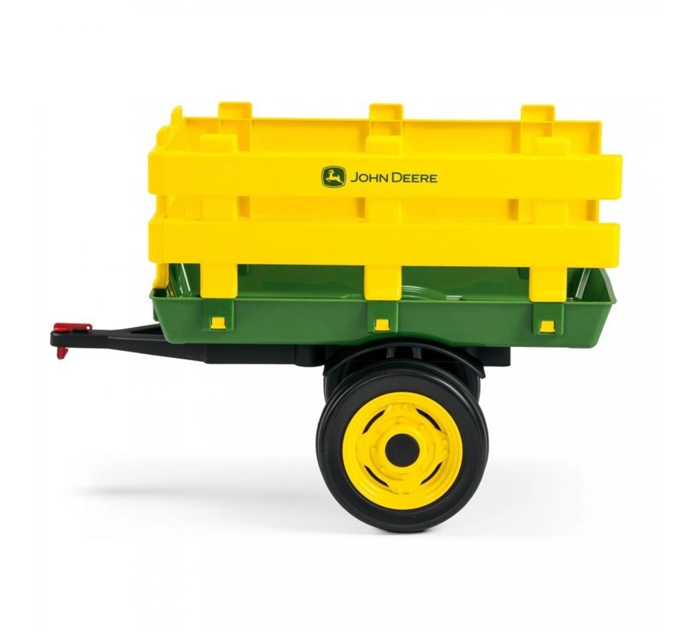 Deze trailer van het merk Peg Perego kan worden vastgehaakt aan de grondlader tractor John Deere. Zo creëer je extra veel ruimte om spullen te kunnen vervoeren.