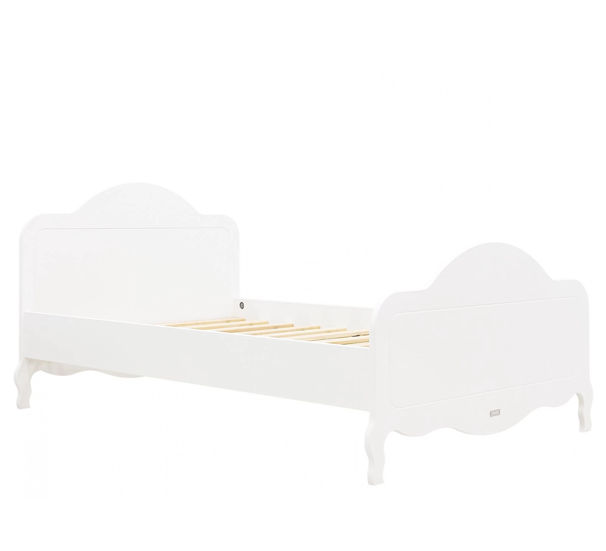 Deze twijfelaar 120×200 Elena uit de collectie van Bopita is een stijlvol bed met een klassieke uitstraling. Dit komt door de kenmerkende golven aan het hoofd- en voeteneinde en de sierlijke pootjes. Het bed is afgewerkt met witte lak op waterbasis en de golvende kam is voorzien van subtiele groeven. Het bed wordt geleverd inclusief lattenbodem.