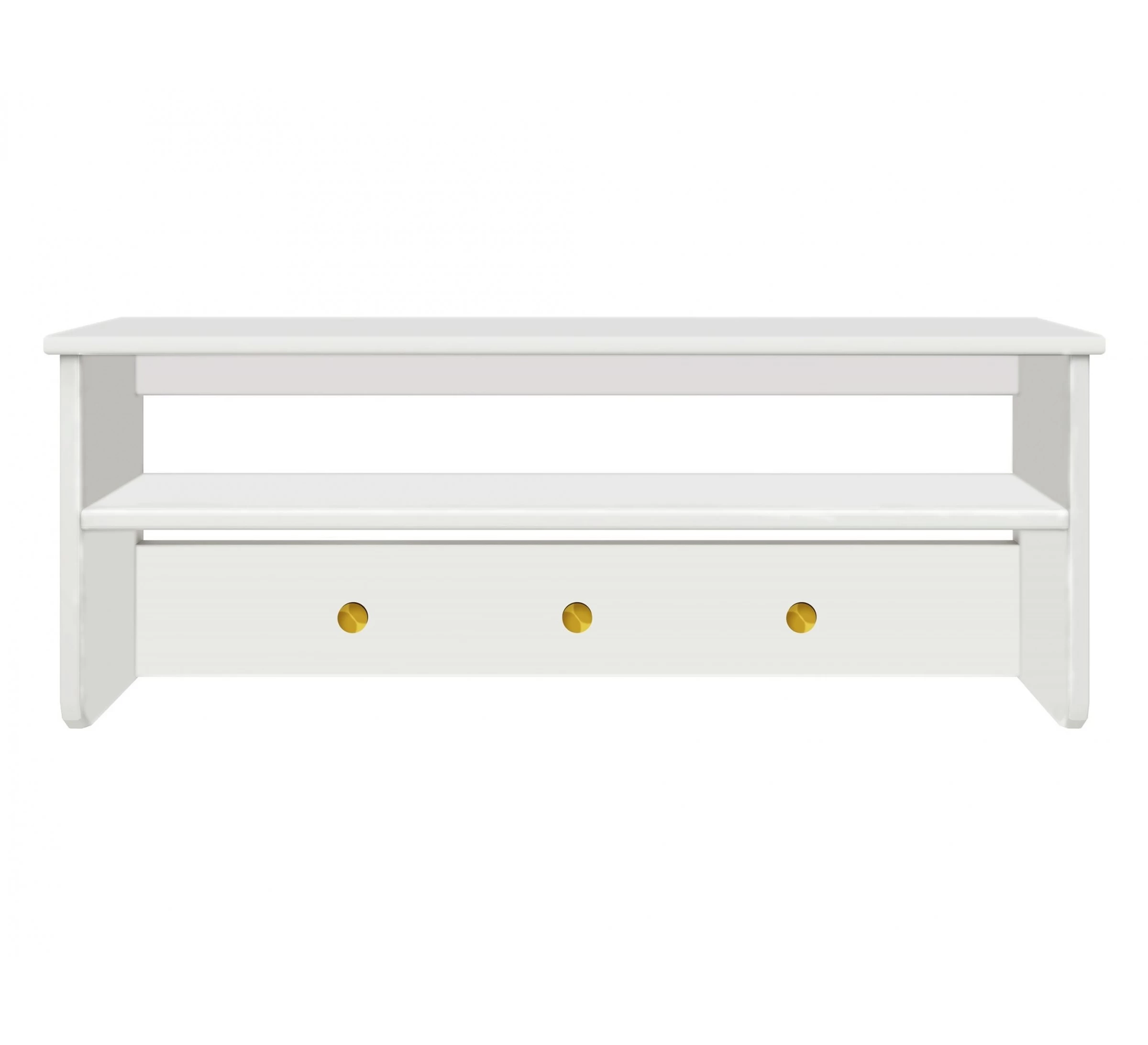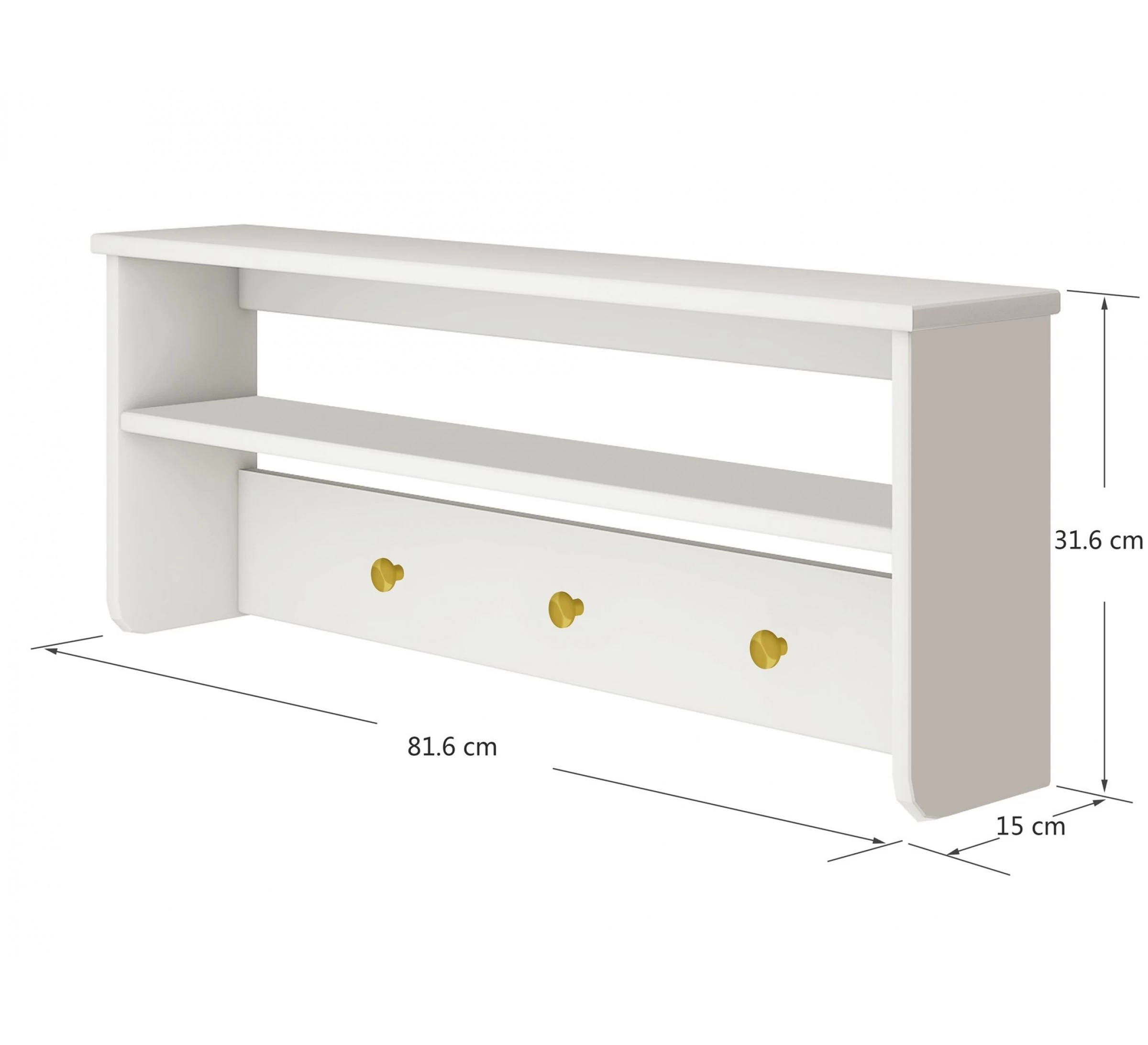 Dit mooie wandrek Luna van het merk Flexa is erg handig om bijvoorbeeld boven de commode te hangen. Zo heb je extra opbergruimte en alle benodigde spulletjes snel bij de hand als je je kindje moet aankleden of verschonen. Het wandrek is uitgerust met drie messing vergulde haken om accessoires of babykeding aan te hangen. Het wandrek is gemaakt van MDF.